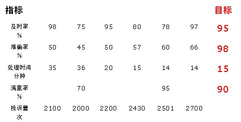 在日常工作中,業(yè)績評估在運營商客戶服務部門的工作中地位非常重要。在績效考核的過程中,經(jīng)常可能產(chǎn)生多方對同一個結(jié)果有不同評價的現(xiàn)象,這大多是由于各方的評價標準和評價方式不同產(chǎn)生的。如:當我們問一位投訴管理員“投訴管理管得怎么樣?”的時候,如果他的回答是“還可以”,則會產(chǎn)生很大的歧義。表1是1-6月份投訴處理流程的主要相關(guān)指標情況。