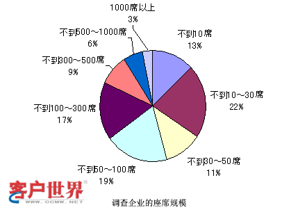 那么和剛才雜志社調查的結果是一樣的。這個數(shù)字又是政府方面調查的結果,他們調查的很細,對很小規(guī)模的,比如說1-4人的呼叫中心都進行了調查,并且看到這種小規(guī)模的呼叫中心還占有很大的比例?梢钥吹,10人以下的呼叫中心可能在這個結果里面占了基本上高于50%,所以可能得到一個結論,就是在日本小型的呼叫中心非常多。