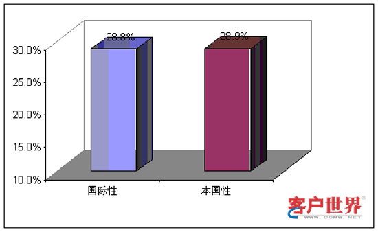 從業(yè)務(wù)功能看來(lái),國(guó)際性呼叫中心和本國(guó)性呼叫中心承擔(dān)著不同的角色。9%的國(guó)際性呼叫中心和14%的本國(guó)性呼叫中心提供僅限于客戶服務(wù),例如賬號(hào)查詢和催費(fèi)收款。39%的國(guó)際性呼叫中心和59%的本國(guó)性呼叫中心專門展開(kāi)網(wǎng)上營(yíng)銷和銷售(外撥為主)。43%的國(guó)際性呼叫中心和29%的本國(guó)性呼叫中心同時(shí)承擔(dān)客戶服務(wù)和銷售功能。最后,我們調(diào)查到9%的國(guó)際性呼叫中心專門從事技術(shù)支持,而且這些中心專門為國(guó)際市場(chǎng)設(shè)立。服務(wù)功能上的差異會(huì)對(duì)商業(yè)定位和人力資源管理提出不同的要求。