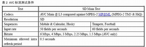 鑒于AVC的編碼效率能夠達(dá)到MPEG-2的2倍,我國有關(guān)測試機(jī)構(gòu)在測試AVS時,通常把AVS視頻的碼率也設(shè)在MPEG-2典型碼率的二分之一或更低,也就是測試AVS編碼效率是MPEG-2的2倍或更高的情況下的AVS視頻的編碼質(zhì)量是否能夠廣播要求。
