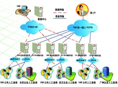 2、分布式接入服務(wù)功能:"企業(yè)客戶服務(wù)系統(tǒng)"為企業(yè)分布式的人工座席提供接入服務(wù)。當(dāng)某個(gè)城市的消費(fèi)者在使用168電話中自動(dòng)語音應(yīng)答功能時(shí),只要按"0"號(hào)鍵,電話就會(huì)被轉(zhuǎn)到企業(yè)在的當(dāng)?shù)胤⻊?wù)人員座席上,由專業(yè)人員來提供服務(wù)支持。此種功能適合于在多個(gè)城市設(shè)立人工座席的企業(yè)用戶。