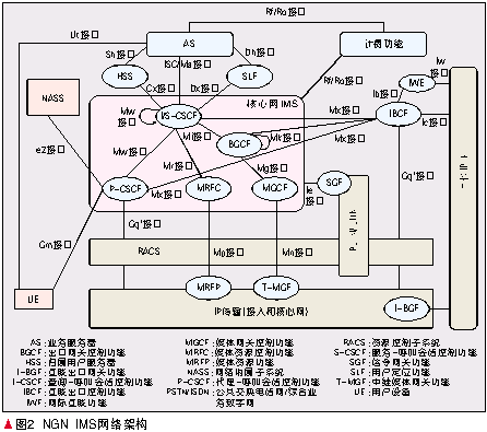 圖2所示為NGN IMS的網(wǎng)絡架構(會話控制、承載),下面介紹一下該網(wǎng)絡架構中主要邏輯實體。