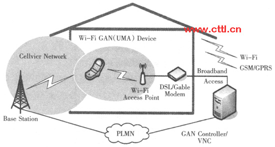 (3)終端融合。終端融合主要是指能夠提供固定和移動(dòng)網(wǎng)絡(luò)連接的智能終端(見圖3),用戶采用多模終端后,可以根據(jù)自己的意愿選擇接入最適合的網(wǎng)絡(luò):固定或移動(dòng)網(wǎng)絡(luò),而網(wǎng)絡(luò)本身也可以智能地根據(jù)用戶的接入方式作出最佳的動(dòng)作。