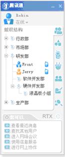 RTX的互聯功能:企業(yè)分支機構互聯;RTX企業(yè)互聯,RTX用戶可以與其他RTX企業(yè)用戶互通;與普通QQ用戶互連。