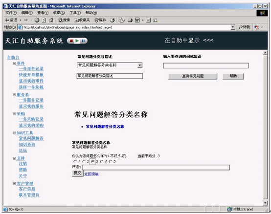 進入自助服務(wù)系統(tǒng)的模式確定了對查詢者可用的功能。如天匯幫助臺應(yīng)提供標準 Web 界面和搜索引擎。