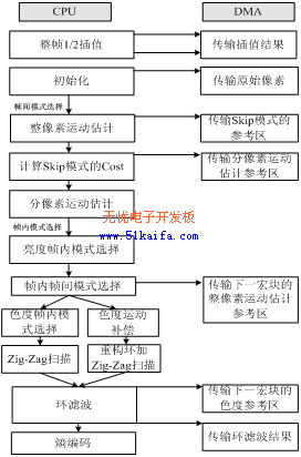 DSP嵌入式程序受硬件資源的限制,對(duì)程序流程和數(shù)據(jù)組織需要從硬件資源和代碼運(yùn)行效率上做仔細(xì)的考慮。通過分析AVS-M編碼器的程序流程,借助實(shí)驗(yàn)中積累的經(jīng)驗(yàn),本文給出了AVS-M編碼器的優(yōu)化方案,主要介紹Cache性能優(yōu)化、存儲(chǔ)空間的分配以及CPU與DMA的并行性設(shè)計(jì)等。