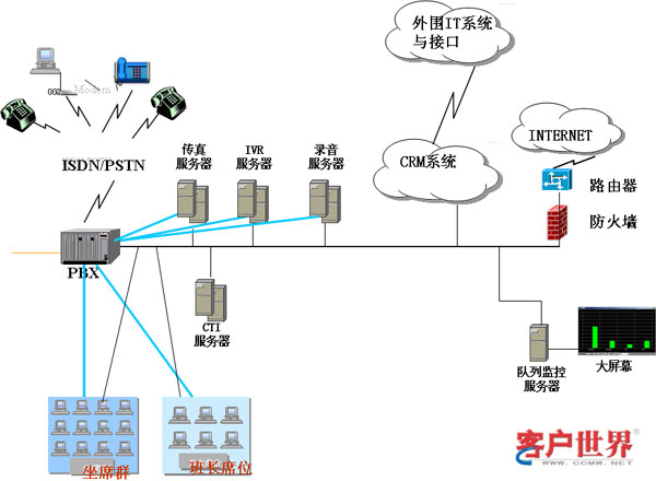 1、整合方案的規(guī)劃和設(shè)計應(yīng)遵循“自上而下,通盤考慮”的原則:在整合項(xiàng)目醞釀階段需要結(jié)合企業(yè)自身特點(diǎn)以及對客戶的服務(wù)與管理戰(zhàn)略,明確定位呼叫中心在客戶關(guān)系管理中的地位、作用及其發(fā)展方向。在此基礎(chǔ)上確定整合所需要達(dá)到目標(biāo)。目標(biāo)又可分解為技術(shù)目標(biāo)、流程與流程管理目標(biāo)、服務(wù)質(zhì)量控制目標(biāo)、營銷渠道的建設(shè)目標(biāo)等。這些目標(biāo)可再具體到詳細(xì)的項(xiàng)目需求。同樣在制定項(xiàng)目技術(shù)方案時,也需要進(jìn)行從上向下的系統(tǒng)設(shè)計。從CRM整體規(guī)劃的角度上考慮對呼叫中心的整合,包括呼叫中心在CRM體系構(gòu)架中的位置,采用何種技術(shù)進(jìn)行對接,數(shù)據(jù)的流向及定義,整合程度等等。