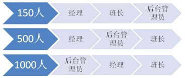 當(dāng)員工人數(shù)到達(dá)500人的時(shí)候,班長往往有30位左右。很多經(jīng)理已經(jīng)不能夠?qū)γ课话嚅L有足夠的了解,更不要說去認(rèn)識大部分員工。這個(gè)時(shí)候,經(jīng)理對班長的比例過寬,需要強(qiáng)化后臺管理員的角色。比如排班、績效、質(zhì)量管理(而不僅是評估)、信息分析(數(shù)據(jù)和報(bào)告)、行政、培訓(xùn)等工作中,這些管理輔助角色都在逐漸強(qiáng)化。而每一個(gè)后臺管理者可能成了經(jīng)理的直接下屬,他們起草的流程和制度,來由經(jīng)理決策。某種程度上說,他們比班長的影響力更大,因?yàn)榘嚅L還是影響著12-20人。有時(shí)候后臺管理員也決定了班長的時(shí)間精力分配,那是班長最寶貴的資源。那么誰是管理者呢?首先是經(jīng)理,其次是后臺管理員,最后才是班長。
