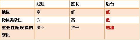 - 盡可能建立和“管理級別”并行的“專業(yè)級別”,提高后臺管理員的地位,同時(shí)減少關(guān)鍵崗位流動(dòng)性(輪崗機(jī)制下尤其要關(guān)注)。