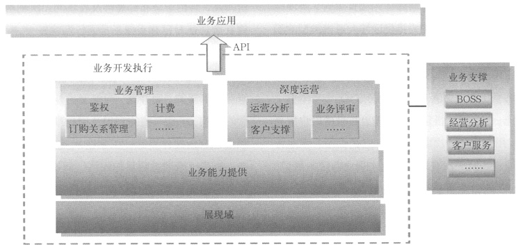 根據(jù)移動(dòng)增值業(yè)務(wù)特征及業(yè)務(wù)部署、管理需求,目標(biāo)網(wǎng)絡(luò)架構(gòu)中將實(shí)現(xiàn)業(yè)務(wù)與控制的分離,劃分業(yè)務(wù)控制域和業(yè)務(wù)開發(fā)執(zhí)行域,并可開放公共接口實(shí)現(xiàn)各增值業(yè)務(wù)應(yīng)用無(wú)差別的接入、管理及功能調(diào)用,以方便的實(shí)現(xiàn)業(yè)務(wù)的融合、業(yè)務(wù)功能的靈活組合,更利于高效、簡(jiǎn)便的實(shí)現(xiàn)業(yè)務(wù)部署、開發(fā)及運(yùn)營(yíng)。