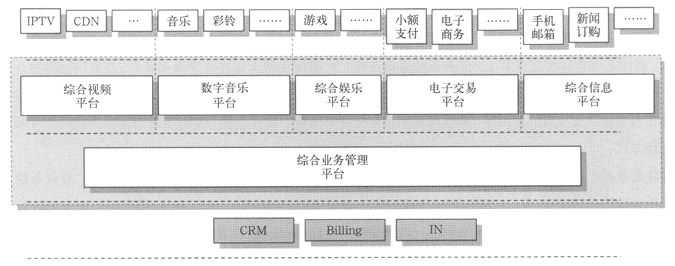 。3)對(duì)各增值業(yè)務(wù)缺乏統(tǒng)一分析、規(guī)劃、運(yùn)營(yíng)機(jī)制。由于用戶習(xí)慣、市場(chǎng)發(fā)展、增值業(yè)務(wù)特征等使各增值業(yè)務(wù)平臺(tái)功能在不同時(shí)期開展情況不同,需要對(duì)各平臺(tái)用戶信息、業(yè)務(wù)信息進(jìn)行統(tǒng)一提取、分析,用以幫助業(yè)務(wù)功能整體架構(gòu)部署、靈活調(diào)整業(yè)務(wù)發(fā)展策略和建設(shè)策略。