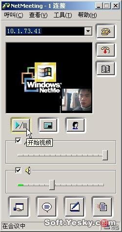 Netmeeting界面下方有四個按鈕,分別對應(yīng)了“共享”、“聊天”、“白板”和“傳送文件”四項主要功能(這四項功能需要在會議屬性中啟用,否則在會議中處于不可用狀態(tài))。