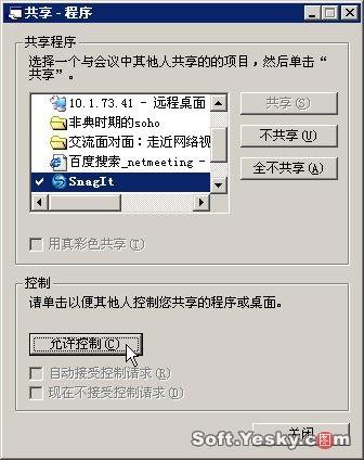 然后在客戶端Netmeeting中只須在其窗口出現(xiàn)的共享程序窗口中單擊“控制”/“請求控制權(quán)”并經(jīng)授權(quán)后即可以操控主機上的應(yīng)用程序了。