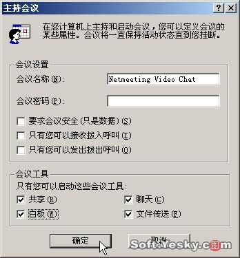 在Windows2000/XP中,Netmeeting在默認情況下已經(jīng)安裝了,假如你的系統(tǒng)中沒有Netmeeting,那么你可以嘗試以“添加Windows組件”的形式安裝Netmeeting,此外,你還可以到微軟網(wǎng)站下載Netmeeting,網(wǎng)址是http://download、microsoft、com/download/netmeeting/Install/3、01/W9XNT4/CN/nm30、exe,版本為簡體中文3、01版。Netmeeting安裝極為簡單,只要一路單擊“下一步”就可以了,這里就不再贅述。