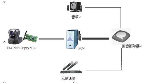設(shè)備要求:攝像機(jī)、投影儀、音箱(配"回音消除器")、麥克風(fēng)。