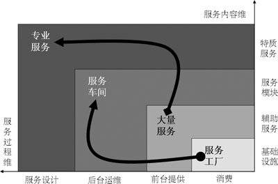 本質(zhì)上講,電信服務(wù)產(chǎn)品的四類服務(wù)都是在此二維機(jī)理的作用下生成的,服務(wù)的內(nèi)容映射著企業(yè)的有形資本資源和人力資本資源,服務(wù)的過程映射著企業(yè)的組織資本資源,從一種服務(wù)向另一種服務(wù)躍遷,不僅僅是服務(wù)過程和服務(wù)內(nèi)容的重新整合,更重要的是需要彌補(bǔ)相應(yīng)的資源,才能達(dá)到服務(wù)生成的結(jié)果,否則,躍遷就不會成功。