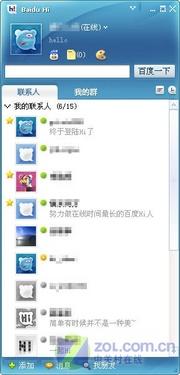 登陸以后進(jìn)入主界面,百度Hi顯得略微清爽簡單一些,符合百度“簡單可依賴”的風(fēng)格。