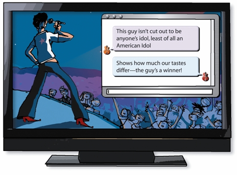 圖1:用戶可以一邊看“美國偶像”,一邊通過電視機(jī)向朋友發(fā)送短信,同時(shí)還研究最新競爭對手的背景。