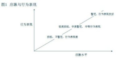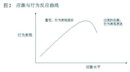 當(dāng)應(yīng)激水平處于一個(gè)較低的指標(biāo)時(shí)人在心理上處于一個(gè)放松、不警覺(jué)的狀態(tài),從而關(guān)聯(lián)的行為表現(xiàn)就比較差但隨著應(yīng)激水平的加大,相關(guān)聯(lián)的形為表現(xiàn)就會(huì)從中等向表現(xiàn)良好過(guò)渡。