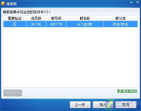 如果你搜索的群已經(jīng)存在,那么程序?qū)谐鏊阉鞯饺禾枺x中后單擊“加入”即可(如圖11)。