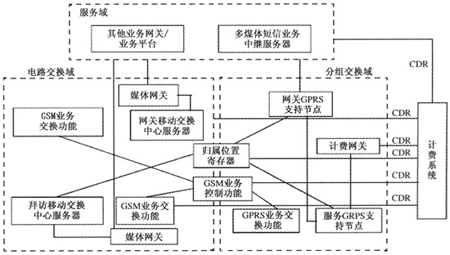 主要實(shí)現(xiàn)各類數(shù)據(jù)增值業(yè)務(wù),例如WAP業(yè)務(wù)、互聯(lián)網(wǎng)短信業(yè)務(wù)、位置應(yīng)用業(yè)務(wù)等。業(yè)務(wù)域由各業(yè)務(wù)網(wǎng)關(guān)/業(yè)務(wù)平臺產(chǎn)生CDR后,發(fā)送給計費(fèi)系統(tǒng)作后續(xù)處理。例如,多媒體信息服務(wù)(MMS)的CDR由MMS