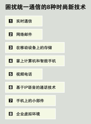 在最近由調(diào)查機(jī)構(gòu)Yankee Groupe針對(duì)企業(yè)用戶進(jìn)行的一項(xiàng)關(guān)于當(dāng)前一些最時(shí)尚新技術(shù)應(yīng)用狀況的調(diào)查中,受訪的500名被調(diào)查者中有86%承認(rèn),在工作場(chǎng)所,他們不止一次地使用了被調(diào)查的8種“時(shí)尚新技術(shù)”中的一種或幾種。這些設(shè)備和技術(shù)在其應(yīng)用部署的目標(biāo)上,一方面是出于業(yè)務(wù)創(chuàng)新的需求,另一方面則是出于對(duì)提升現(xiàn)有生產(chǎn)效率的考慮。網(wǎng)界網(wǎng)