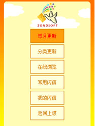進入“發(fā)送閃信”后發(fā)現(xiàn)動畫的內容細致的進行了分類,共有 “好玩、動作、傳情、祝福、感慨”五大類。但是初次安裝閃信軟件時,這些分類里的動畫內容是沒有的,需要進入“更新閃信“功能項,更新安裝“常用閃信!痹凇俺S瞄W信”安裝不完整的情況下,每次進入“更新閃信”功能項,系統(tǒng)都會提示安裝常用閃信。大家還可以選擇“更新閃信”功能項里面的“每月更新”。
