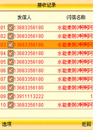 收發(fā)記錄里面詳細的記錄了所發(fā)生和接收的閃信的。選中一條信息,按中建就可以方便的查看這天信息的內容(動畫、文字信息、時間一目了然)。選擇左軟鍵里面的選項可以快捷方便的進行“回復、轉發(fā)、刪除”等操作。