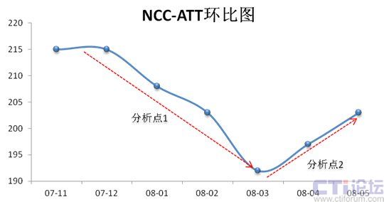 NCC是呼入呼出雙向型的客戶關系中心,服務貫穿于售前、售中、售后各個環(huán)節(jié),下面是半年多來NCC的月人工通話均長(下文簡稱ATT)變化圖(圖1):