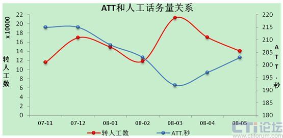 請先看月度ATT和人工話務量的關聯(lián)圖:(圖2)