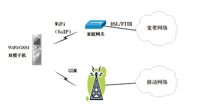 WiFi/GSM雙模手機(jī)既可以接入無(wú)線局域網(wǎng)WLAN,實(shí)現(xiàn)VoIP(VoiceoverIP)功能,又可以接入蜂窩網(wǎng),實(shí)現(xiàn)移動(dòng)通信功能。但傳統(tǒng)的WiFi/GSM雙模手機(jī)在進(jìn)行WiFi網(wǎng)絡(luò)和GSM網(wǎng)絡(luò)之間的切換時(shí),無(wú)法實(shí)現(xiàn)無(wú)縫切換,用戶體驗(yàn)比較差,因此前幾年這種雙模終端發(fā)展得并不理想。