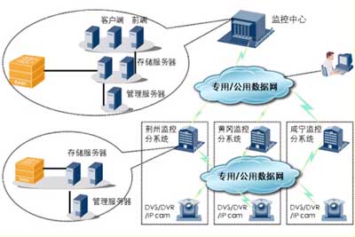 集中控制單元通過控制通道對前端單元進行控制,進行視頻或者其他的信息采集。前端單元將視頻文件存儲在前端的直連存儲或者是發(fā)送給網(wǎng)絡錄像單元進行集中存儲。