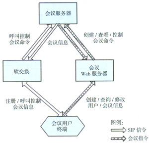 基于上述的分層開放系統(tǒng)架構(gòu),通過各層設(shè)備之間的相互配合實現(xiàn)了多媒體會議業(yè)務(wù)的應(yīng)用。