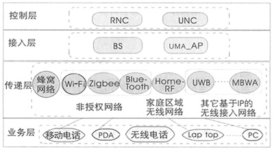 (1)對于固網(wǎng)運營商而言,由于UMA采用的是免費的無須申請的ISM頻段,因此在沒有移動牌照的情況下,它可以被固網(wǎng)運營商采用并藉其介入移動市場,且利用現(xiàn)有資源架構(gòu)UMA網(wǎng)絡(luò),成本相對低廉。
