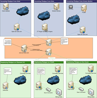 隨著手機應用和用戶生成型內(nèi)容(UGC)的飛速增長,將SMS和MMS信息等手機內(nèi)容發(fā)布到廣播系統(tǒng)中的能力變得越來越重要 - 尤其是在電視節(jié)目和活動的直播等情形下。圖1:該圖以多個輸入格式和多個輸出格式展示了某個活動的集成點和信息流
