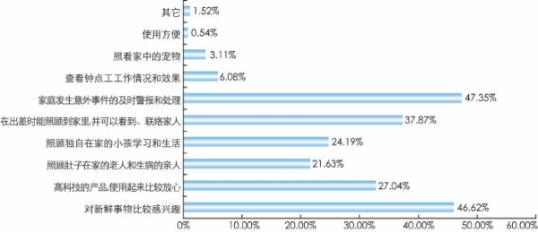 一個(gè)秋天的周末,藍(lán)天、白云、大海、跑車……,男主角駕駛著跑車行進(jìn)在美麗的海濱公路上,不時(shí)通過(guò)手機(jī)屏幕查看前方的道路狀況和沿途的風(fēng)土人情,而女主角則正在通過(guò)手機(jī)收看一場(chǎng)現(xiàn)場(chǎng)直播的時(shí)裝秀……,突然女主角一聲尖叫,原來(lái)她出門前忘記了給家里的小狗留下足夠的食物,她趕忙打開手機(jī),通過(guò)遠(yuǎn)程視頻監(jiān)控看到的情景,讓他們驚呆了:小狗已經(jīng)把家里搞得天翻地覆,這個(gè)時(shí)候,它正趴在沙發(fā)上,美滋滋地吃著他們的爆米花。圖1 對(duì)業(yè)務(wù)感興趣的原因