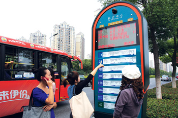 近年來,隨著江蘇蘇州經(jīng)濟(jì)的快速發(fā)展,機(jī)動車保有量激增與道路通行效率下降之間的矛盾日益顯現(xiàn),公交車運(yùn)行不準(zhǔn)時、候車時間遠(yuǎn)遠(yuǎn)背離乘客期望已經(jīng)成為突出問題,蘇州智能公交建設(shè)也因此被提上議事日程。2009年,智能公交項目作為蘇州工業(yè)園區(qū)成立15周年的獻(xiàn)禮,由蘇州工業(yè)園區(qū)管委會立項,蘇州工業(yè)園區(qū)城市管理局、公交公司負(fù)責(zé)建設(shè),中國移動蘇州分公司總承建,多方聯(lián)手共同打造智能公交新模式。該項目榮獲第四屆全國信息化應(yīng)用、通信技術(shù)創(chuàng)新優(yōu)秀成果金獎。圖:市民在站臺查看電子站牌信息