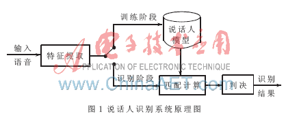 說話人識別又被稱為話者識別,是指通過對說話人語音信號的分析處理,自動確認(rèn)說話人是否在所記錄的話者集合中,以及進(jìn)一步確認(rèn)說話人的身份。說話人識別的基本原理如圖1所示。電子技術(shù)應(yīng)用