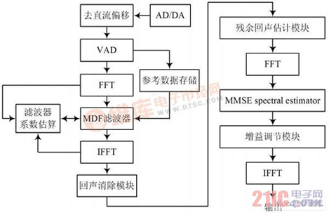 摘 要:聲學(xué)回聲消除器一直是視頻會議系統(tǒng)不可缺少的組件。將回聲消除算法結(jié)合噪音消除和靜音檢測算法等,提出一種改進(jìn)的實時音頻處理系統(tǒng)方法,并在TMS320C6713B 上實現(xiàn),能夠有效改善噪音、雙工檢測、非線性回聲等導(dǎo)致自適應(yīng)濾波器發(fā)散的問題。該系統(tǒng)在保證正常雙工通話的同時,對非線性回聲的抑制有著明顯的改善效果。211C電子網(wǎng)