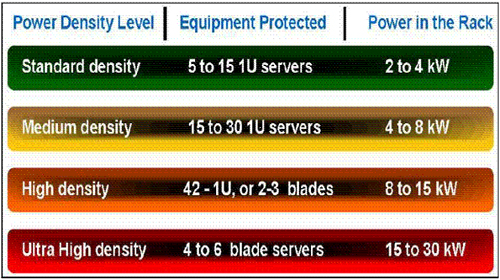 當企業(yè)部署刀片式服務(wù)器來宿主其虛擬服務(wù)器時尤其如此。刀片式服務(wù)器采用多個即插即用型處理裝置,它們共享公共的電氣系統(tǒng)、電源、風扇、電纜和存儲器。這樣的安排節(jié)省了數(shù)據(jù)中心的占地面積,簡化了硬件管理,并提高了IT靈活性。然而,這同時也大大增加了運算密度。結(jié)果,刀片式服務(wù)器產(chǎn)生大量的熱,從根本提高了機柜級供電要求。確實,一個典型的傳統(tǒng)服務(wù)器機柜可能需要4至6 kW電力,而一個典型的布滿刀片式機架的機柜則可能需要高達30 kW的電力,遠遠超過許多電源和冷卻系統(tǒng)的處理能力。