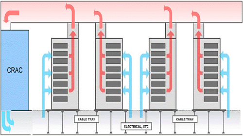 現(xiàn)在,大多數(shù)企業(yè)都在其服務(wù)器所在樓層的周圍部署機房空調(diào)(CRAC)裝置來解決數(shù)據(jù)中心產(chǎn)生的熱量。許多公司還采用“熱通道-冷通道”式硬件配置,針對指定的服務(wù)器機柜只配置了熱風排出或者冷風吸入。這就產(chǎn)生了對流循環(huán),從而形成冷卻的連續(xù)氣流。然而,雖然這類技術(shù)基本足以應(yīng)對傳統(tǒng)數(shù)據(jù)中心的需求,但卻往往無法處理云基礎(chǔ)架構(gòu)產(chǎn)生的巨大熱量。因此,公共和私有云環(huán)境通常需要更先進、更強大的冷卻技術(shù)。