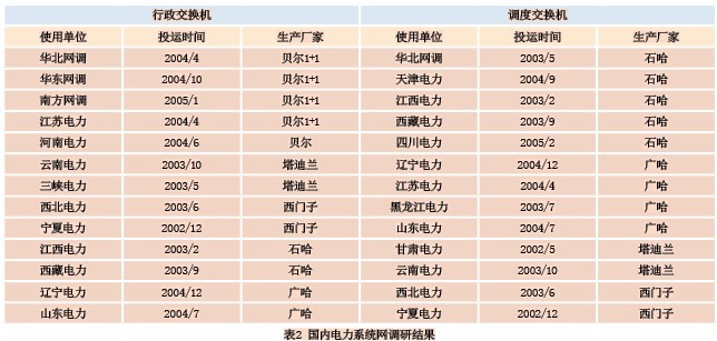 通過對目前國內(nèi)電力系統(tǒng)網(wǎng)省一級的用戶使用交換機設備品牌進行電話調(diào)研統(tǒng)計,從整體上更能體現(xiàn)交換設備技術發(fā)展走向,為軟交換應用的可行性評估提供可靠的數(shù)據(jù)。表2為重點調(diào)研的匯總結(jié)果。