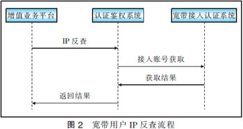 對于寬帶用戶來說,認(rèn)證鑒權(quán)系統(tǒng)需要根據(jù)用戶訪問的IP地址對用戶身份進行反查;或?qū)τ脩粼L問業(yè)務(wù)時輸入的用戶賬號信息進行驗證。其中反查與驗證工作均需借助于寬帶接入認(rèn)證系統(tǒng)(AAA)實現(xiàn)。