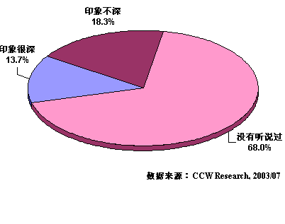 盡管2.5G的概念在各種媒體上被炒作得沸沸揚(yáng)揚(yáng),然而在本次調(diào)查中卻發(fā)現(xiàn),大部分被訪者對(duì)2.5G仍然十分陌生。有將近七成的被訪者(68.0%)表示從來(lái)沒(méi)有聽(tīng)說(shuō)過(guò)2.5G通訊技術(shù)(業(yè)務(wù))。而在知道者中也有一半以上的人表示印象不深。2.5G這個(gè)炙手可熱的概念在用戶這里得到的卻是冷遇。