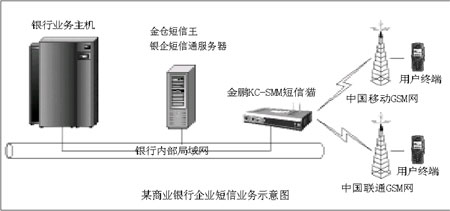 2004年7月,某地級市商業(yè)銀行采用了金鵬KC-SMM短信貓和“金倉短信王銀企短信通解決方案”軟件搭建了企業(yè)級的短信服務(wù)體系。鑒于業(yè)務(wù)量并非很大,所以盡管整個商業(yè)銀行有近三百個辦公網(wǎng)點,在設(shè)備上該商業(yè)銀行仍然只采用一套軟硬產(chǎn)品!敖瘗i的短信平臺產(chǎn)品目前在北方鋪開的時間并不長,所以在價格上有一定的傾斜,我們商業(yè)銀行購買的產(chǎn)品,價格比較便宜!痹撋虡I(yè)銀行信息部某負(fù)責(zé)人說。