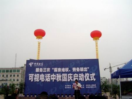 9月28日上午,由四川省司法行政系統(tǒng)、瀘州市政府和中國(guó)電信共同推出的服務(wù)三農(nóng)“探親維權(quán)、勞務(wù)輸出”可視通話免費(fèi)服務(wù)活動(dòng)在瀘州市瀘縣舉行。這一活動(dòng)為川籍在粵務(wù)工人員和四川家鄉(xiāng)親屬提供親情團(tuán)聚、維權(quán)援助、政府關(guān)懷、勞務(wù)輸出等“服務(wù)三農(nóng)”項(xiàng)目提供了實(shí)實(shí)在在的幫助。