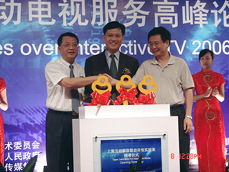 摘要:自上海電信和上海文廣的IPTV九月一日正式放號以后,整個業(yè)界的目光都聚焦在這個全國第一大城市的IPTV運作上。上海長寧區(qū)的另一種IPTV模式,似乎也不甘寂寞,上海市互動媒體聯(lián)合開放實驗室于2006年9月8日在長寧區(qū)成立左到右:上海長寧區(qū)委書記薛潮、上海市科委主任李逸平、國家科委領(lǐng)導