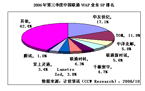 Zed、掌中萬維和華友世紀(jì)。由于從6月份開始北京博訊融通收益計(jì)入TOM在線,第三季度TOM移動WAP業(yè)務(wù)超過空中網(wǎng)。