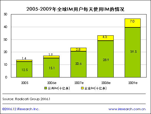 2005-2009年全球IM用戶每天使用IM的情況