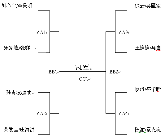 時間 | 15:00-15:20 | 比賽項(xiàng)目 | 雙打半決賽 | 場地號 | 2 |